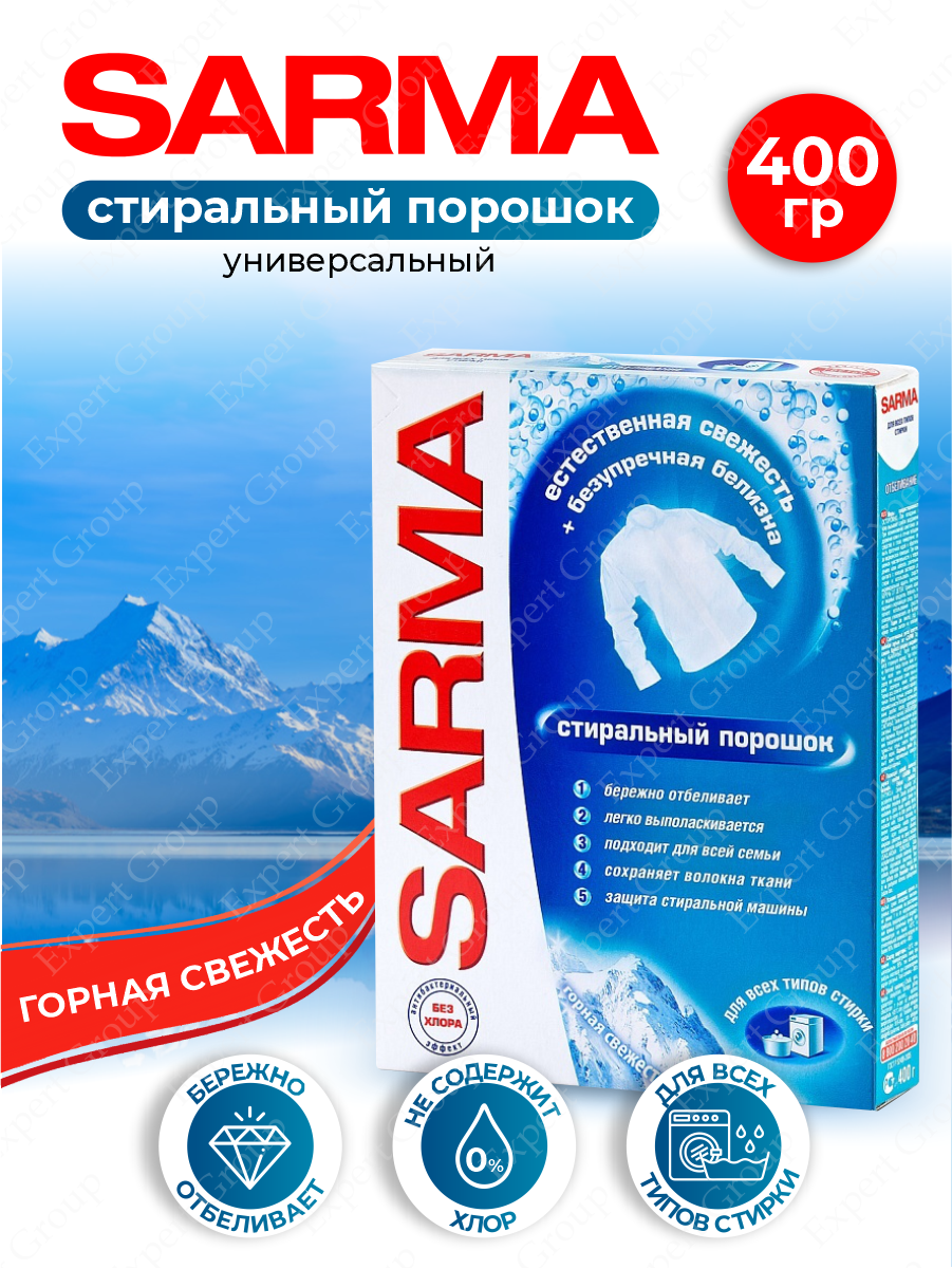 SARMA Стиральный порошок " Горная свежесть", универсальный, 400гр