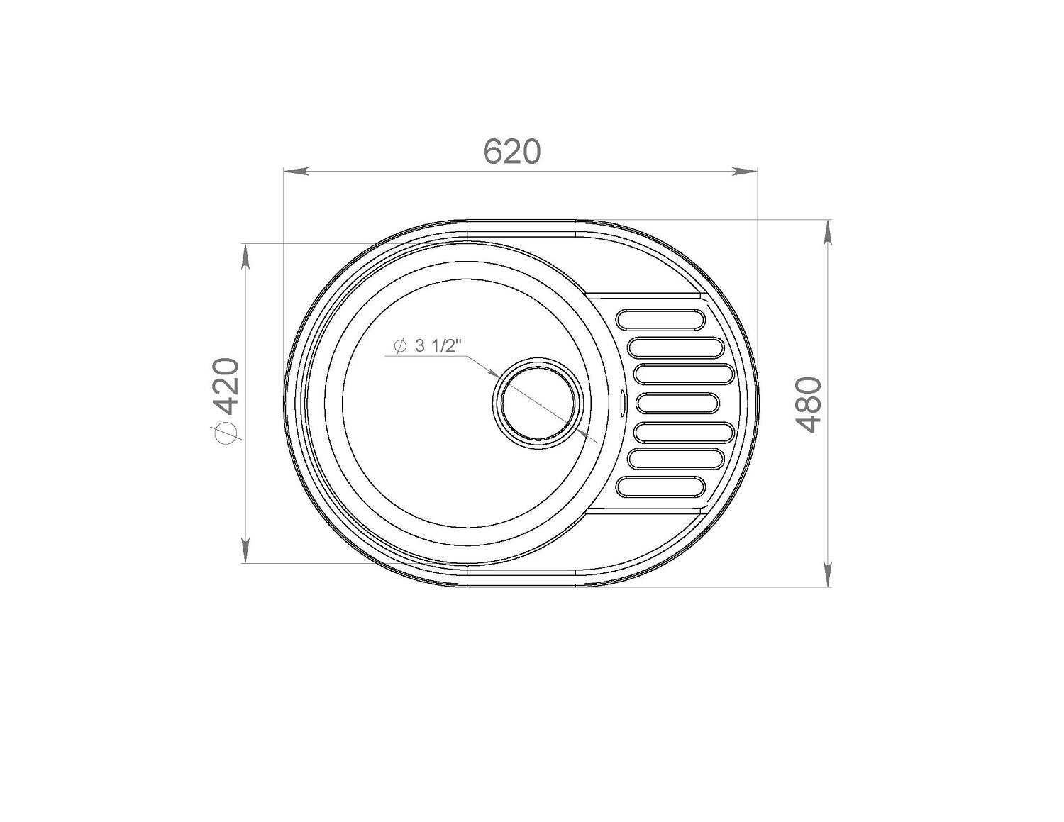 | Диаметр сливного отверстия | 3 1/2 " |