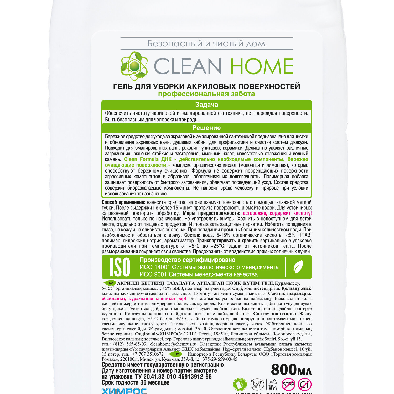 Купить Clean Home Гель для уборки акриловых поверхностей 800 мл