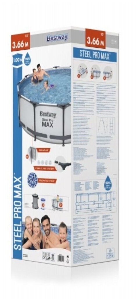 Бассейн Bestway "Steel Pro MAX", каркасный, диаметр 366 см, высота 100 см, объем 9150 л, фильтр-насос, 56418