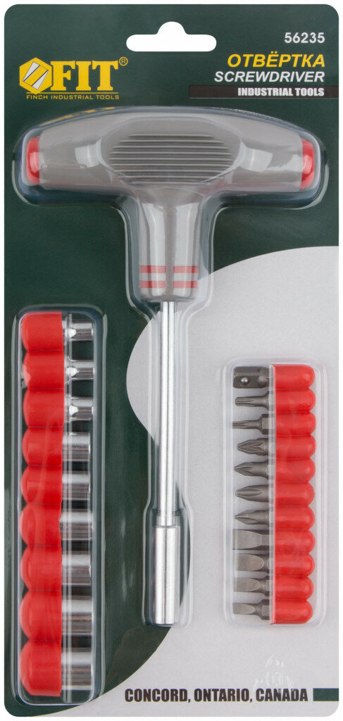 FIT TOOLS 56235 Отвертка Т-образная с магнитным фиксатором с 11 битами + 9 головок FIT