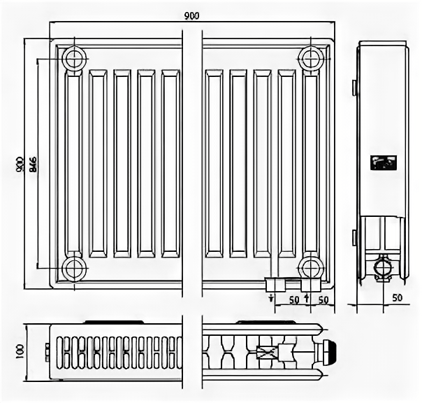 Радиатор Kermi с нижней подводкой FTV тип 22 0906 900x600x100 мм