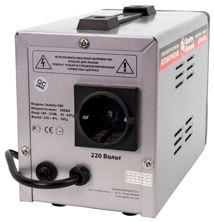 Купить Стабилизатор напряжения однофазный Quattro Elementi Stabilia 500 (0.3 кВт) черный