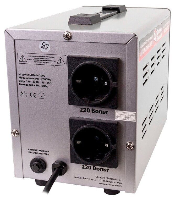QUATTRO ELEMENTI Stabilia 2000(1,2кВт 140-270В 8% 98%кпд 4,5кг) интересное: