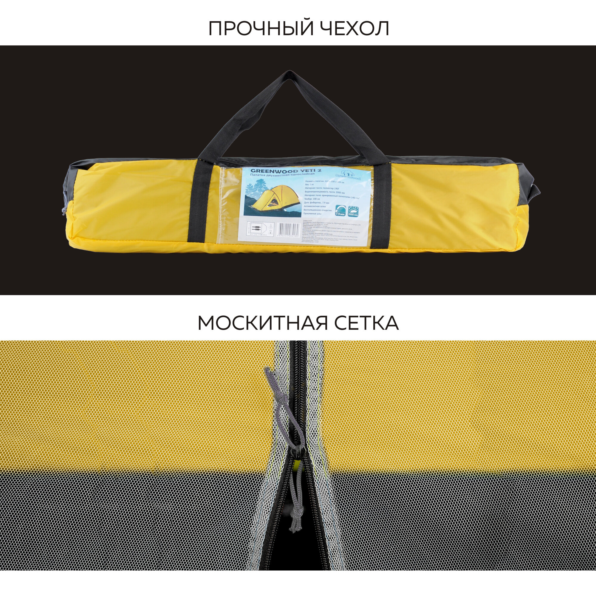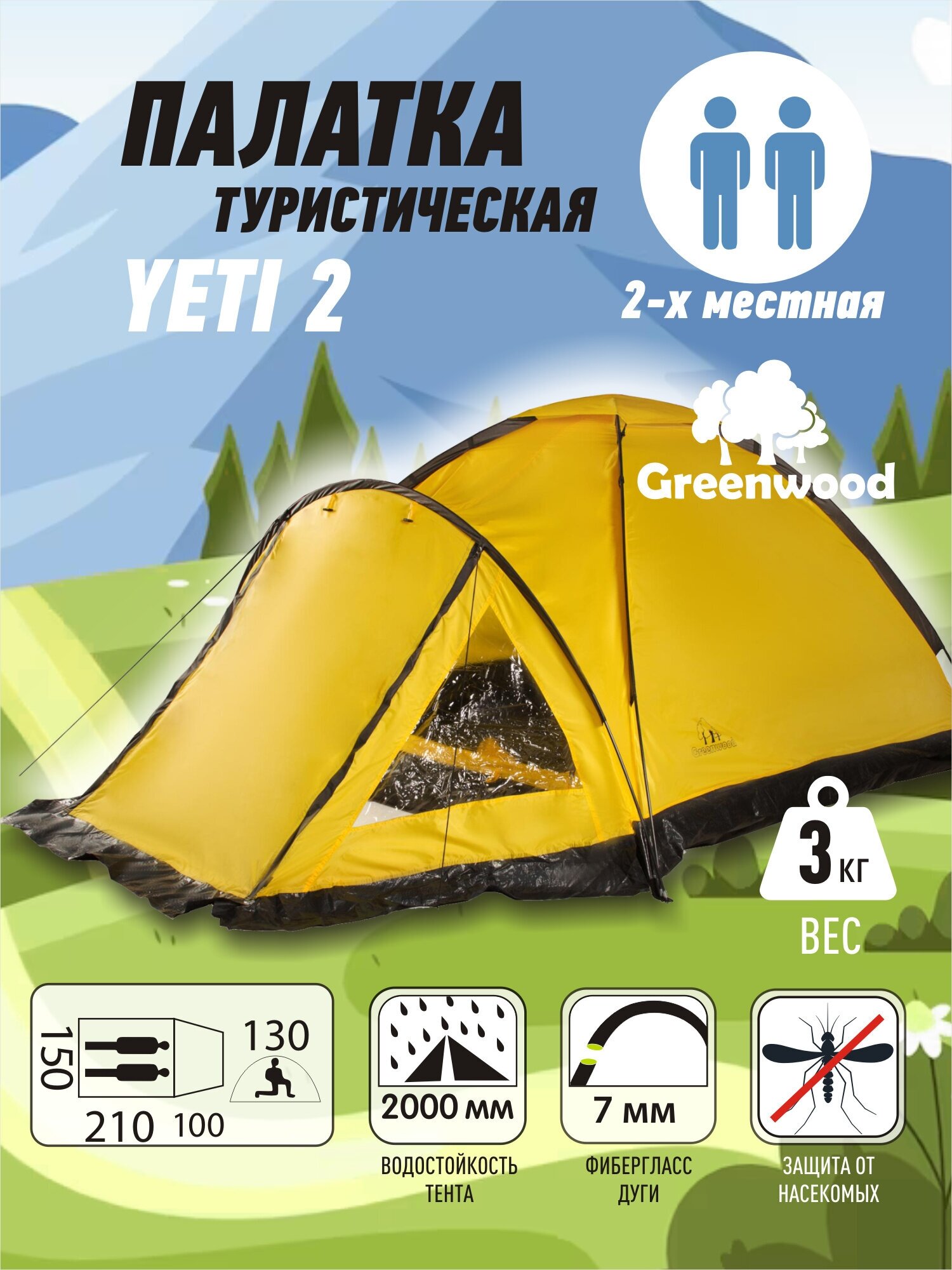Палатка 2-х местная Greenwood Yeti 2 желтый (160) интересное: