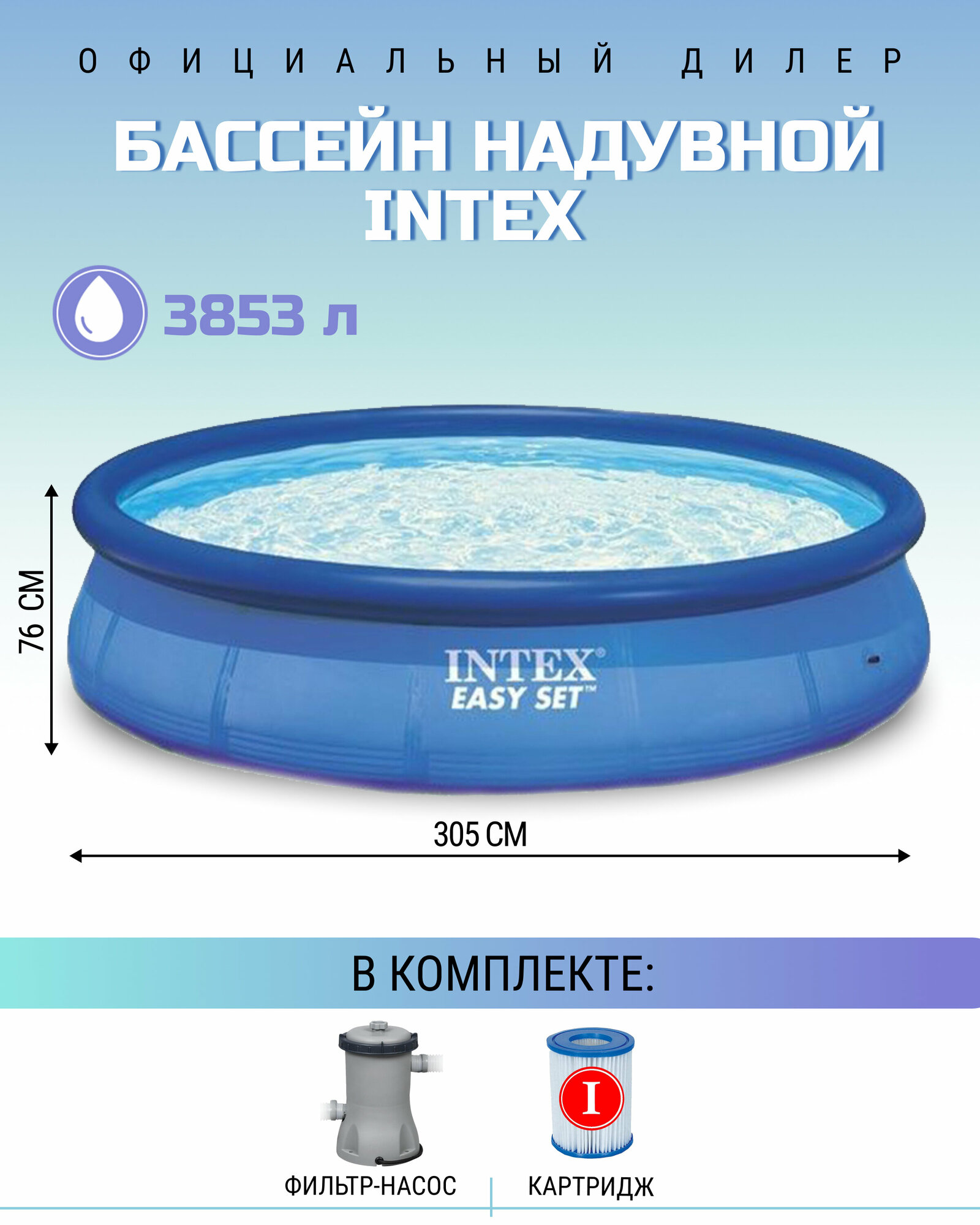 Бассейн надувной Intex Easy Set, 305х76 см, 3853 л, с фильтр-насосом, от 6 лет
