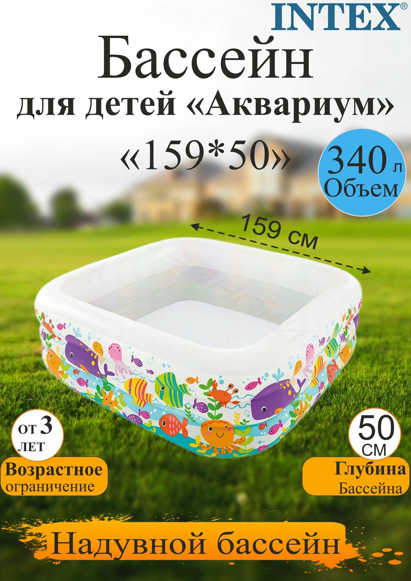 Бассейн детский аквариум 159 см x 159 см x 50 см 340 л INTEX 57471