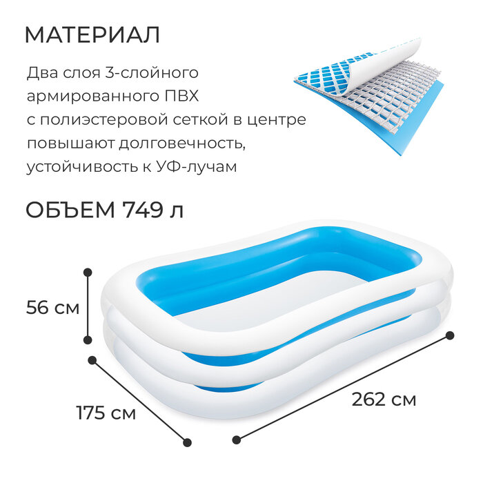 INTEX Бассейн надувной «Семейный», 262 х 175 х 56 см, от 6 лет, 56483NP INTEX интересное: