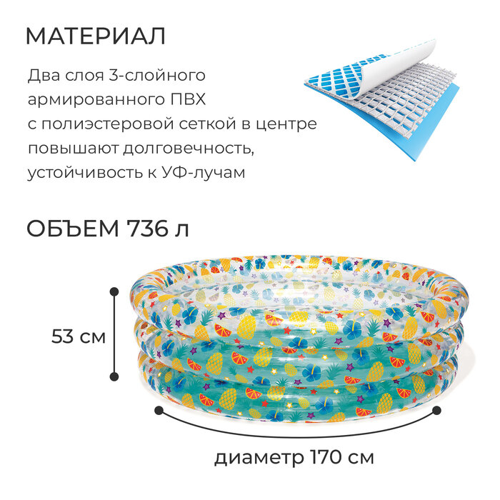 Купить Бассейн надувной «Тропические фрукты», 170 х 53 см, от 6 лет, 51048 Bestway