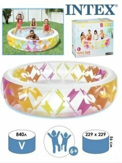 Бассейн надувной с цветными вставками 229х56см в коробке Intex 56494NP