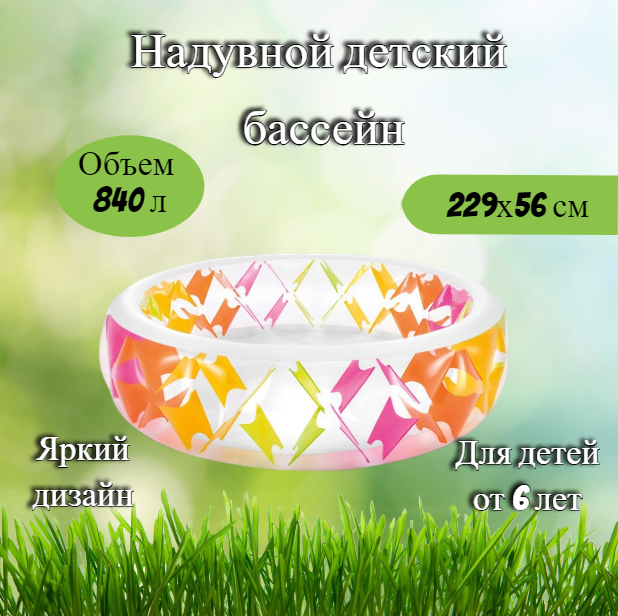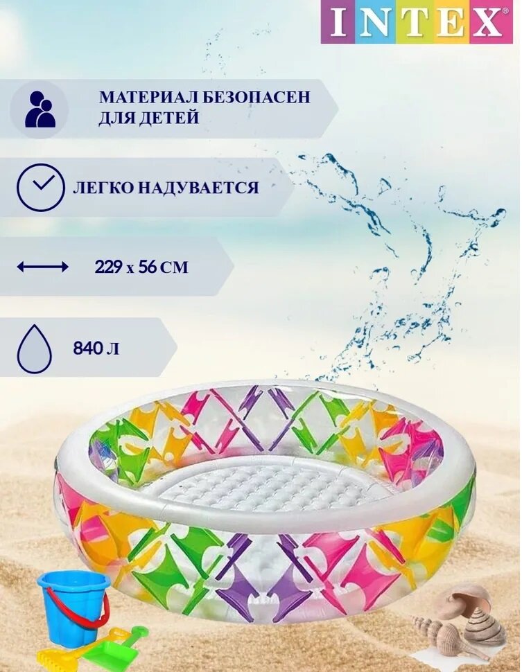 Бассейн надувной Intex, с цветными вставками, 229х56 см, в коробке