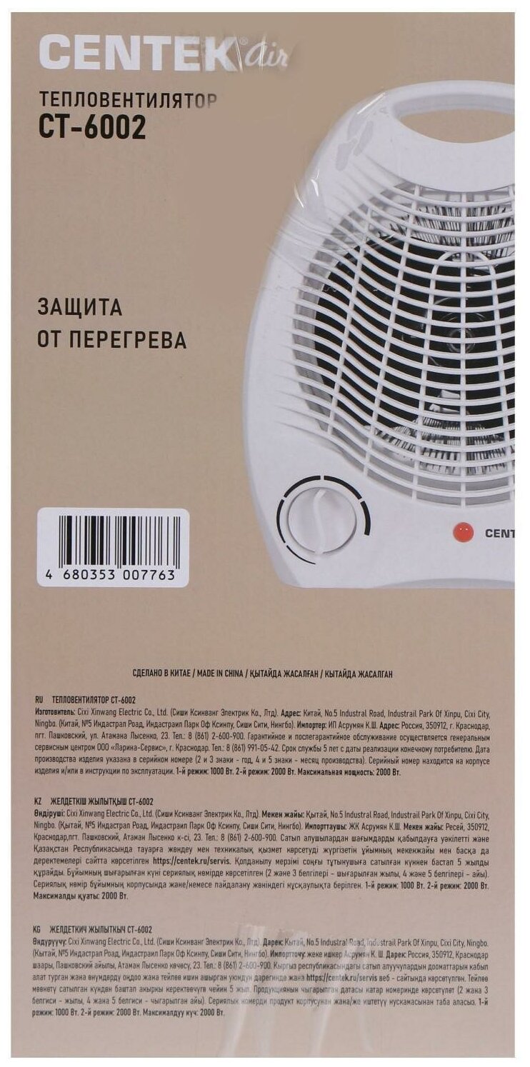 СохранитьТепловентилятор CENTEK CT-6002 (белый) интересное: