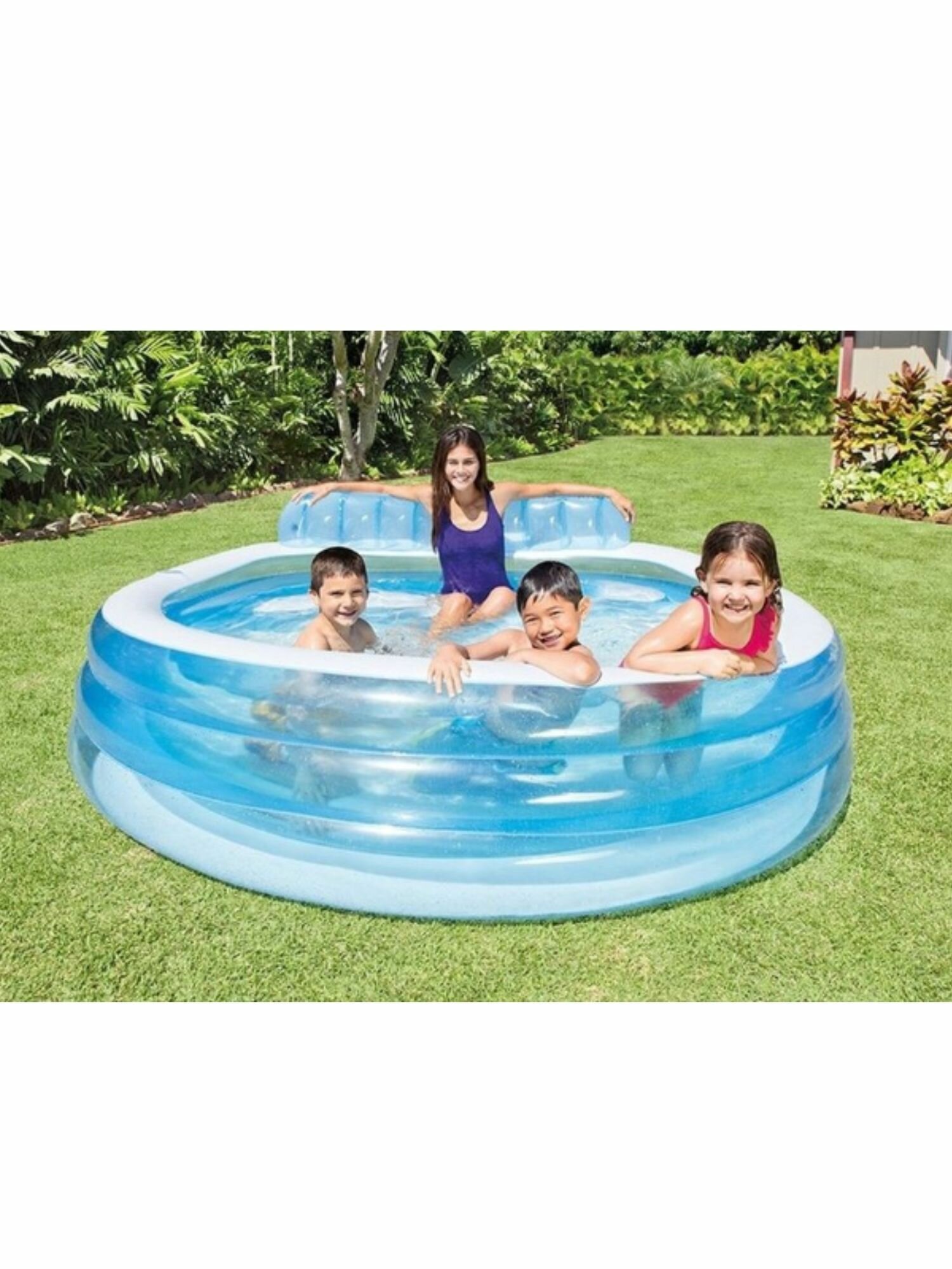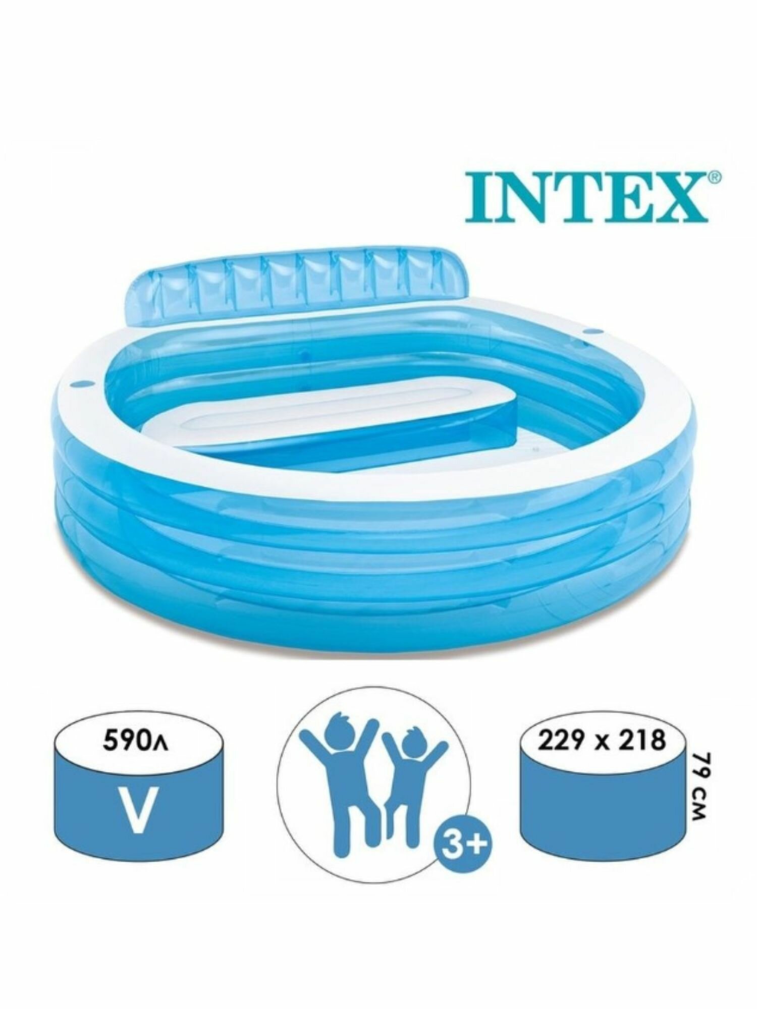 Бассейн надувной Intex Семейный с сиденьем и спинкой 224х216х76см .