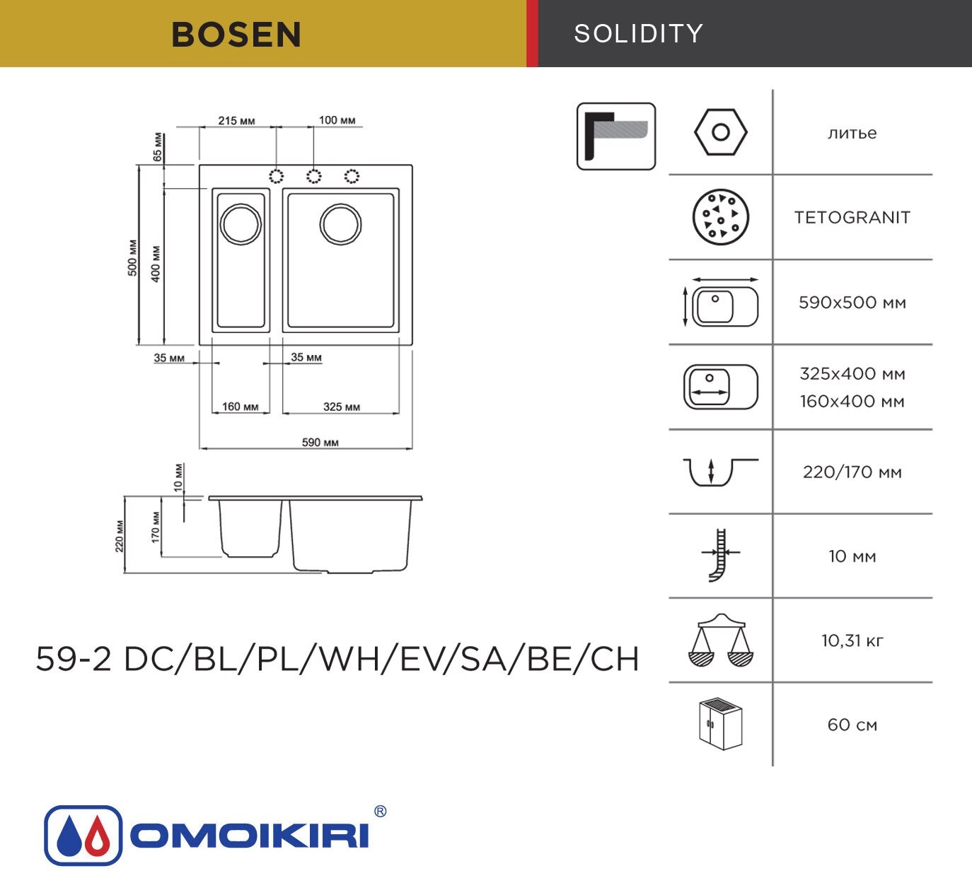 Omoikiri Мойка кухонная Bosen 59-2-EV 4993225 эверест