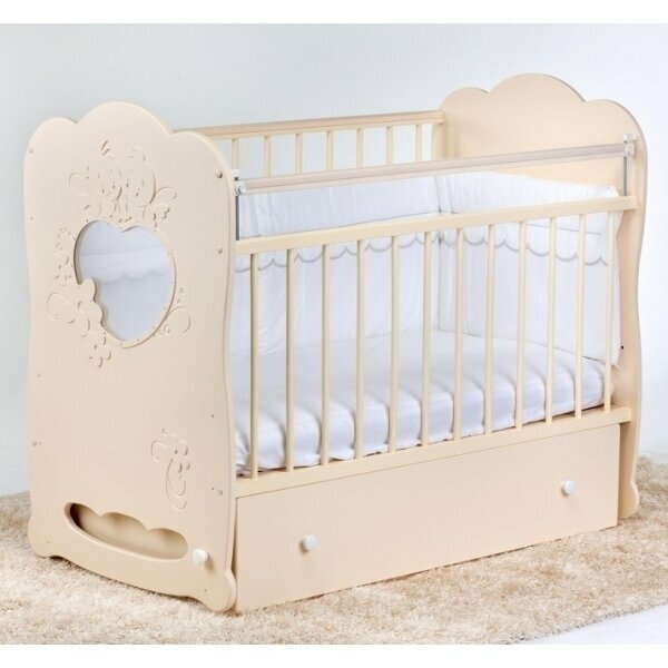 Детская кроватка Островок уюта Мальвина с поперечным маятником и ящиком - слоновая кость