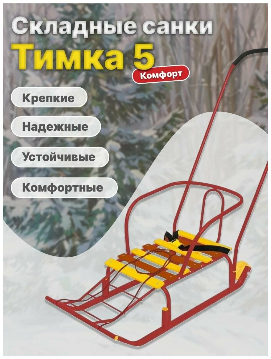 Санки детские с ручкой Nika Тимка 5 комфорт, сиденье 46 x 29 см, красные