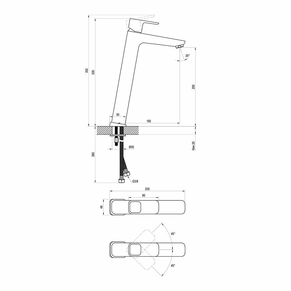 | Плюсы: | Высокий и длинный излив, стильный и необычный, хороший аэратор. |