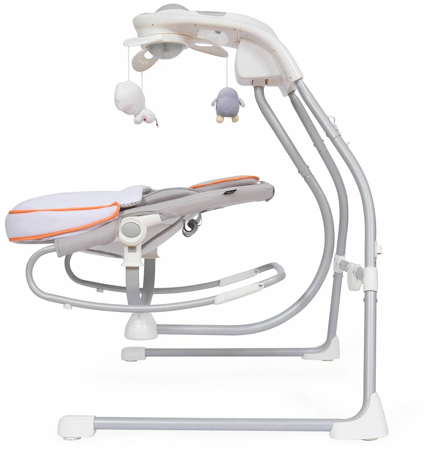 Качельки легко трансформируются, предусмотрено ручное и автоматическое укачивание, есть музыкальное сопровождение.