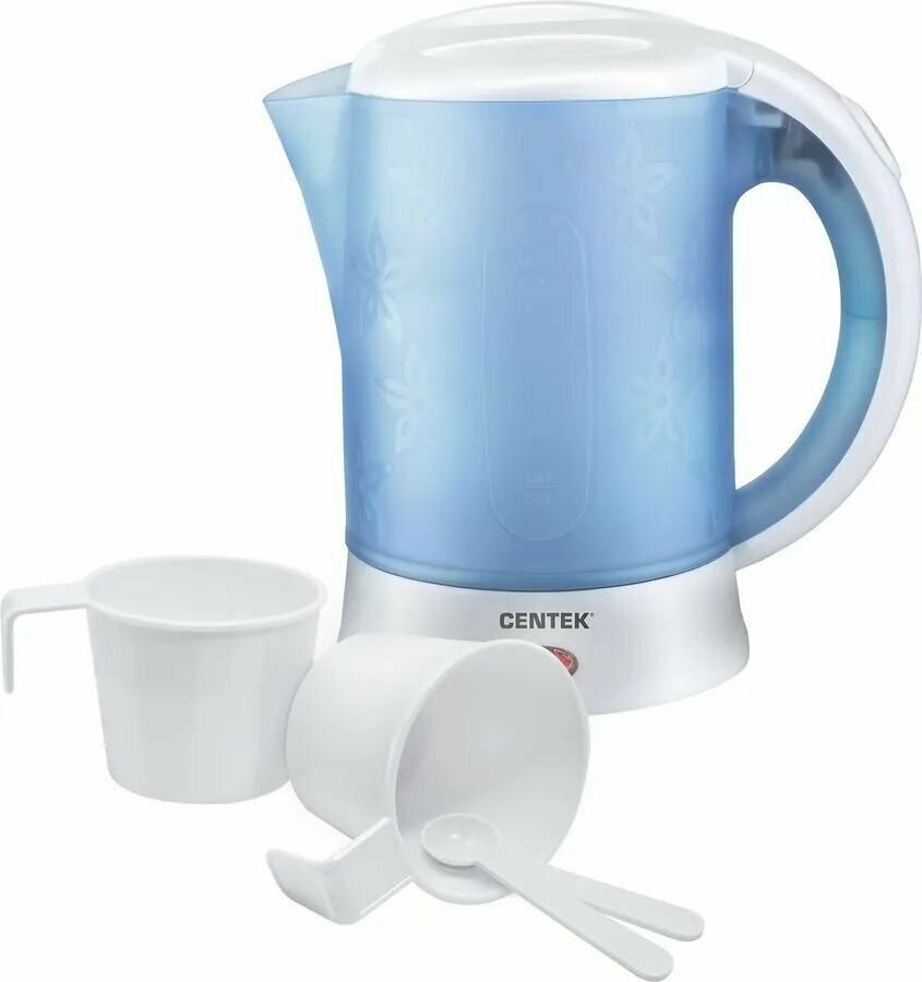Чайник электрический Centek CT-0054 Blue, 0,6 л, с набором (кружки и ложки), пластик