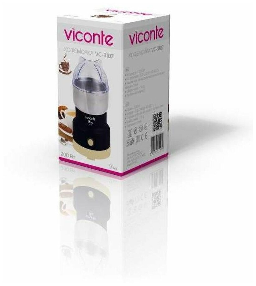 Кофемолка Viconte VC-3107, черный/бежевый интересное: