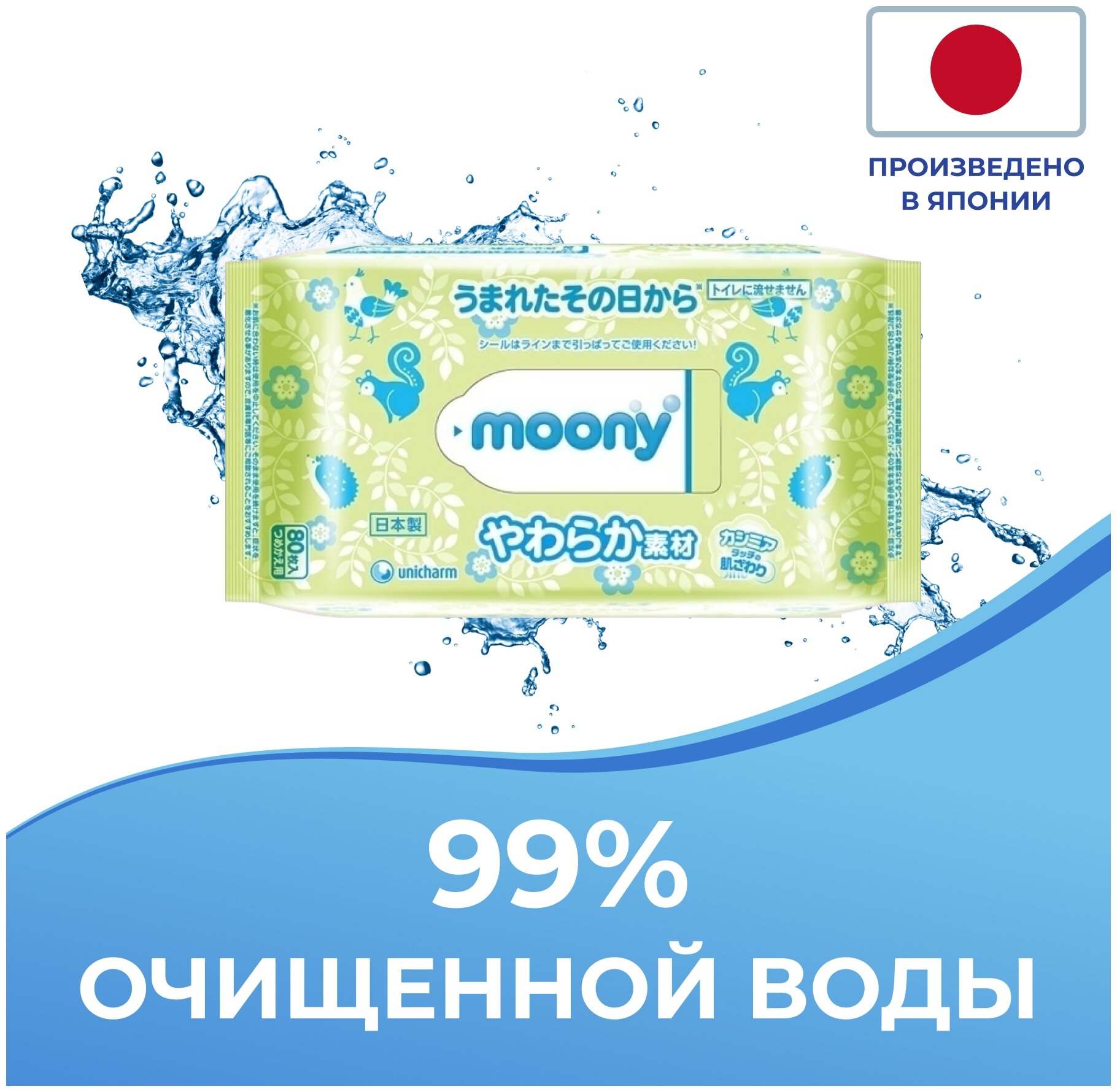 Детские влажные салфетки Moony, сменный блок, 80 шт. интересное: