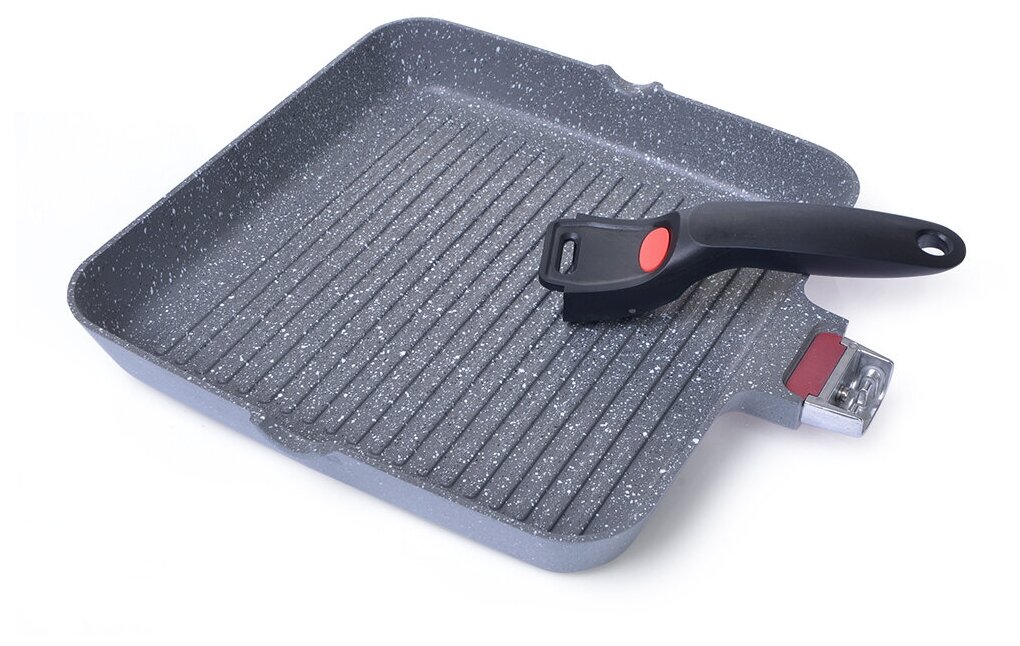 4628 FISSMAN Сковорода-гриль LA GRANITE 28x4,5см Квадратная со съемной ручкой и температурной меткой (алюминий с антипригарным покрытием TouchStone) Ручка-бакелит; Индукция