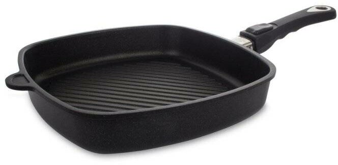 Сковорода гриль квадратная 26х26 см с антипригарным покрытием со съемной ручкой AMT Gastroguss арт. AMT E264G