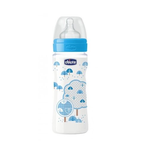 Купить Chicco Бутылочка с соской из силикона Well-Being, средний поток, 250 мл boy/girl, с 2 месяцев, голубой