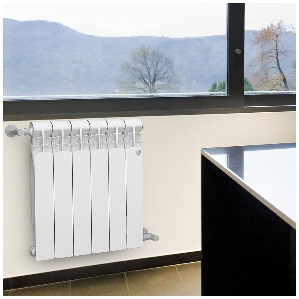 Радиатор биметаллический Royal Thermo Revolution Bimetall 500, 6 секций, боковое подключение (белый Bianco Traffico)