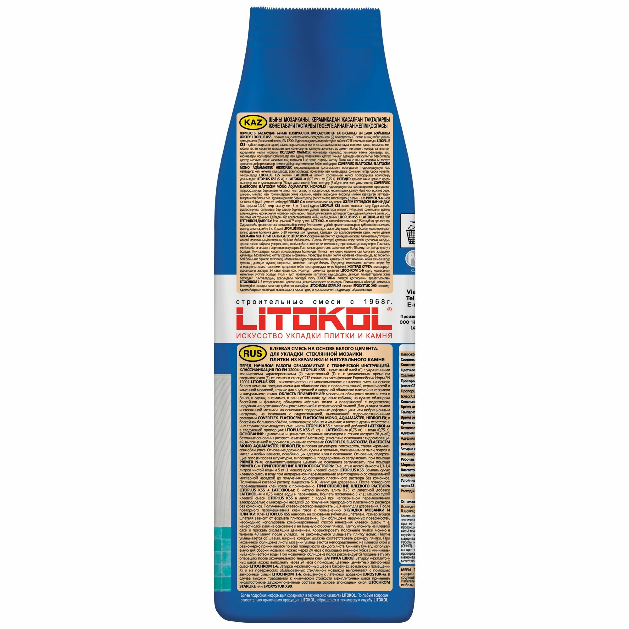 Белая клеевая смесь для мозаики LITOKOL LITOPLUS K55 (литокол литоплюс К 55), 5 кг