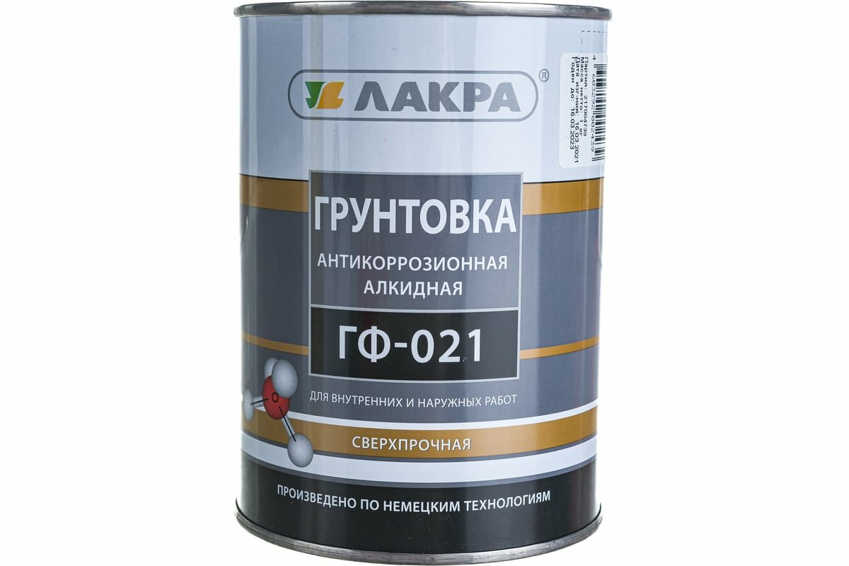 Грунтовка Лакра ГФ 021 антикоррозионная алкидная сверхпрочная 20 кг серая