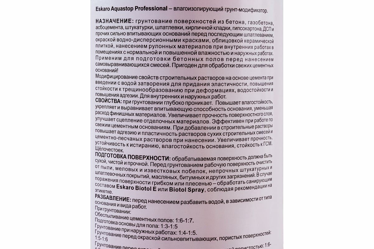 Ниже Вы можете прочитать отзывы на Грунтовка воднодисперсионная, акриловая, Eskaro, Aquastop Professional, концентрат 1:10, 1 л, ознакомится с подробными характеристиками, посмотреть интересные обзоры и фотографии на Грунтовка воднодисперсионная, акриловая, Eskaro, Aquastop Professional, концентрат 1:10, 1 л.