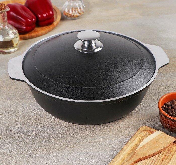 | Плюсы: | Хорошо держит тепло, антипригарное покрытие |