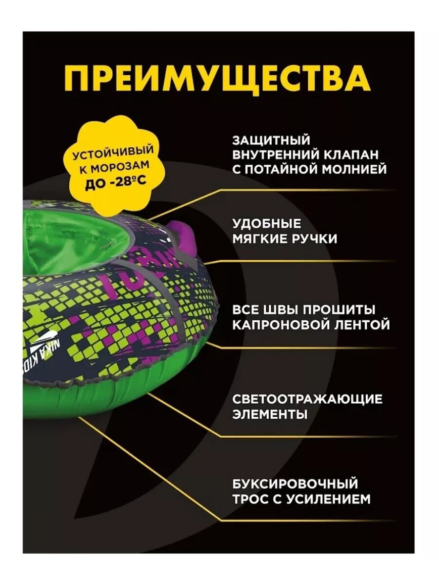 | Плюсы: | Тюбинг отличный, крепкий, выносливый, как только на нем не катались и прыгали. Советую к покупке! |