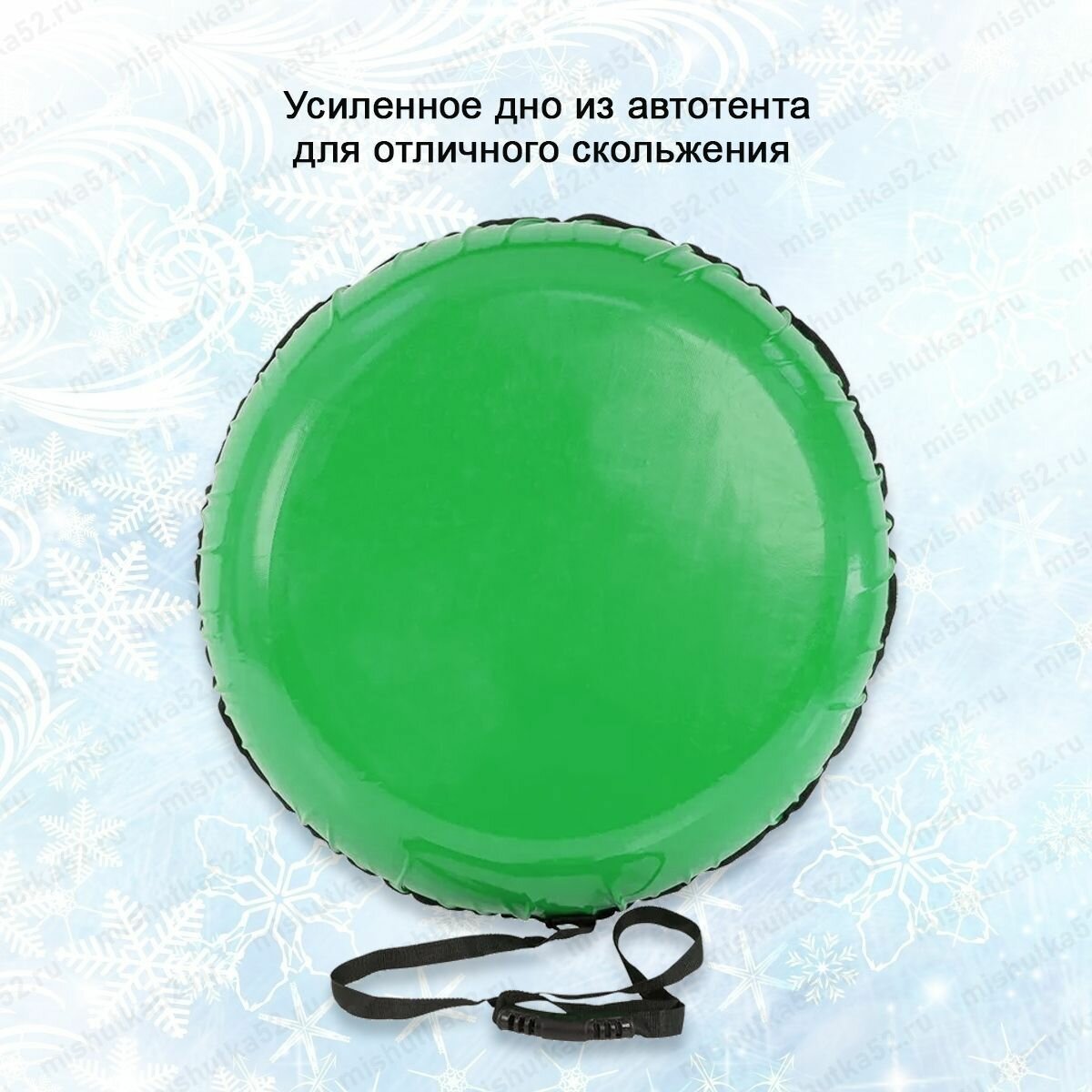 | Отзыв: | Отличная ватрушка, при катании с горы быстро набирает скорость имеет удобные ручки и трос для транспортировки, размер подходит как для взрослых, так и для детей от 9 и старше. |