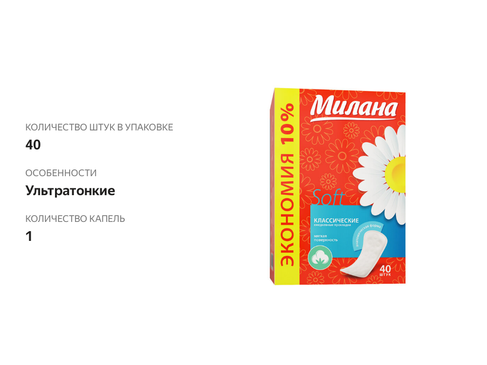 Милана Прокладки ежедневные «Милана» Classic Soft эконом, 40 шт.