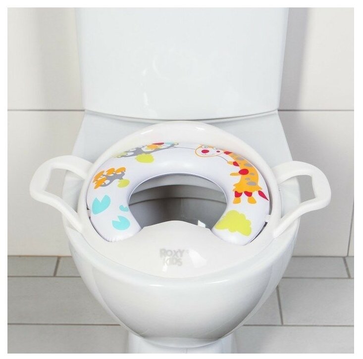 Накладка на унитаз с ручками от ROXY-KIDS. Звери. Мягкое сиденье, антискользящее покрытие.