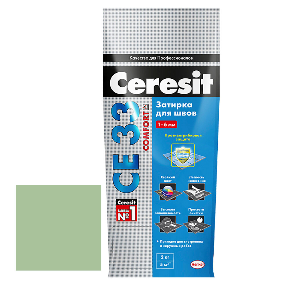 затирка для швов CERESIT СЕ 33 Super 1-6мм 2кг зеленая, арт.2092943