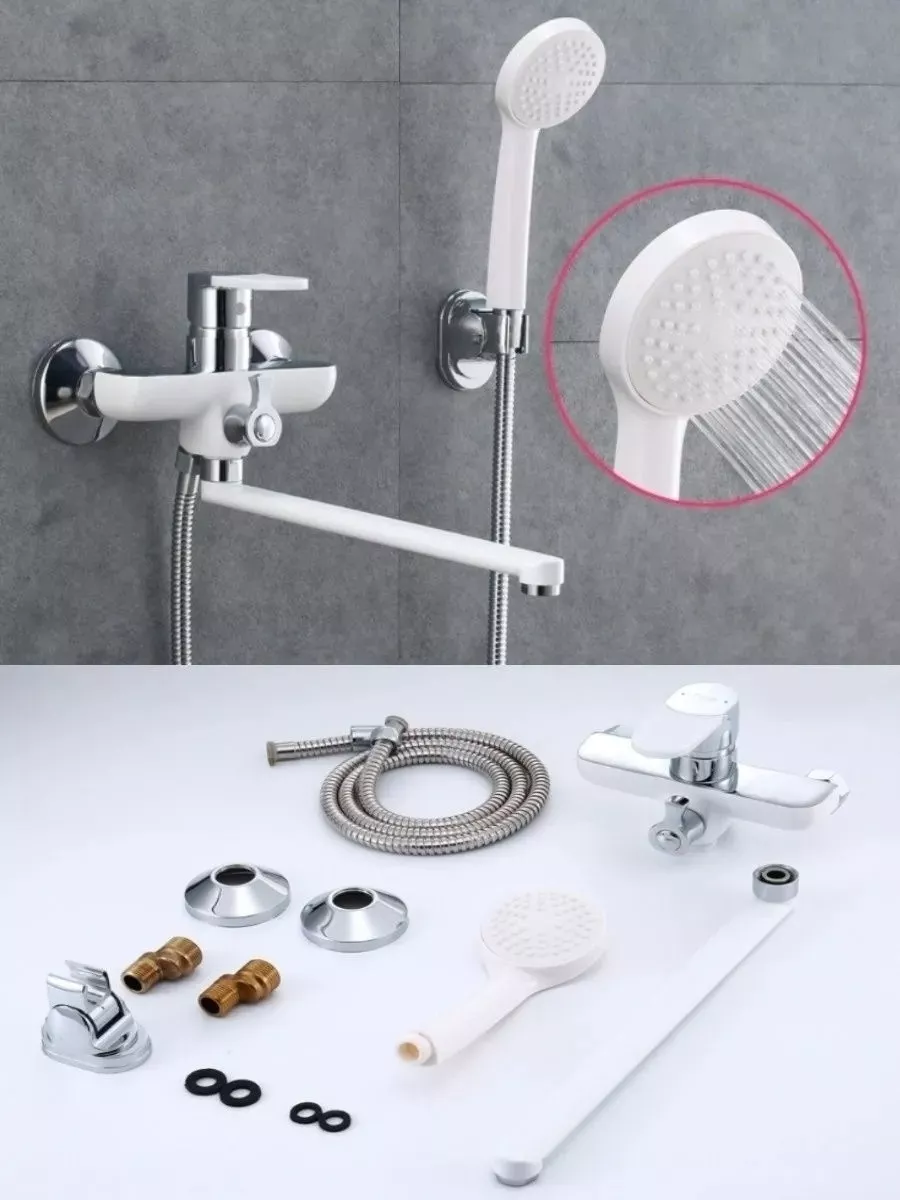 СохранитьСмеситель на ванну Potato P22223-7 с длинным изливом, картридж 35 мм, белый интересное: