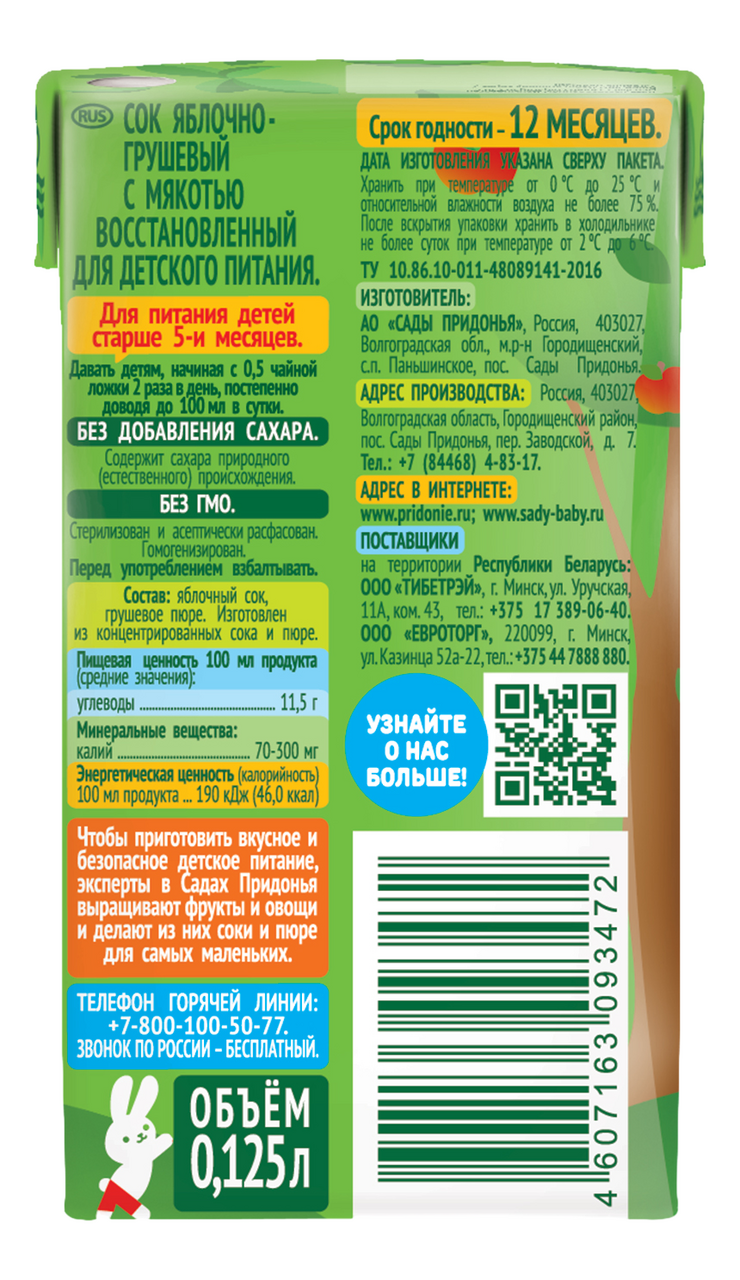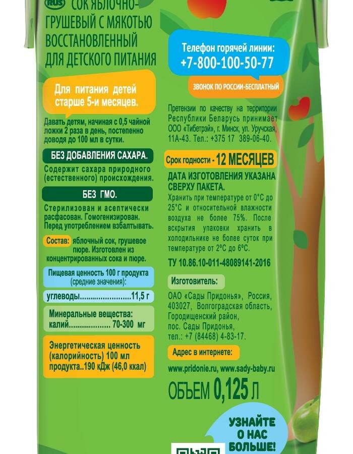 Сок "Сады Придонья" Яблоко-груша восстановленный 0,125л пак интересное: