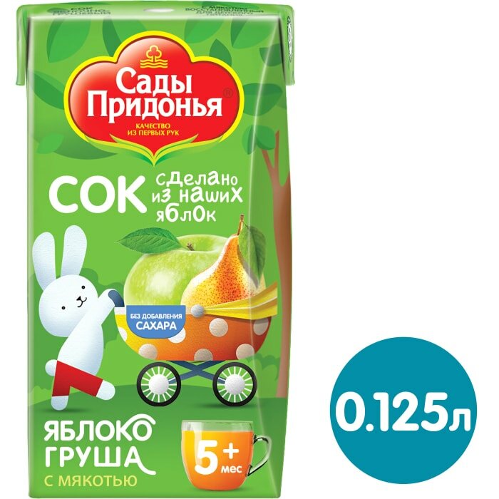 Сок сады придонья Яблоко, груша с мякотью, с 5 месяцев, 125мл