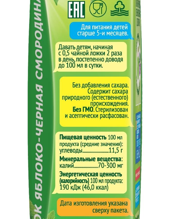 Сок "Сады Придонья" Яблоко-черная смородина осветленный 0,2л пак интересное: