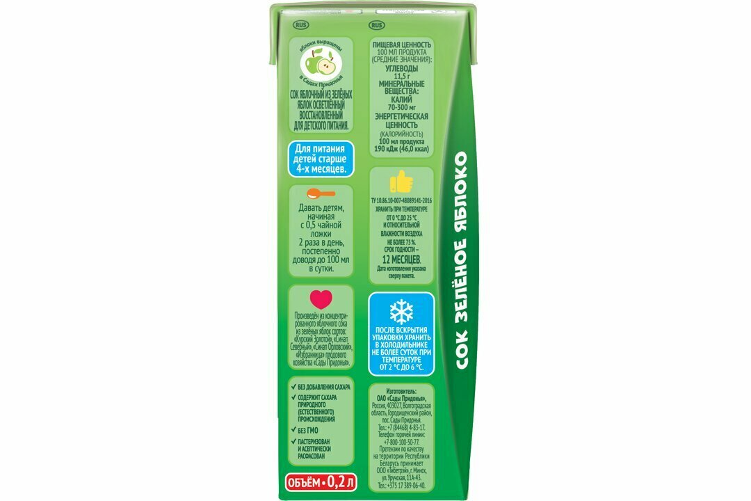 Сок Сады Придонья Зеленое яблоко (Tetra Pak), c 4 месяцев