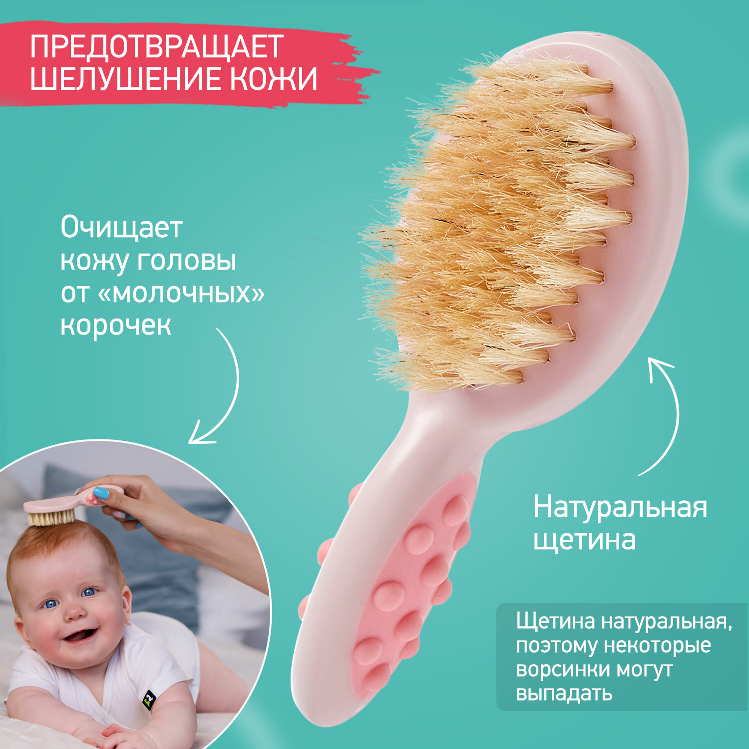 Купить Детская щеточка с расческой. Ворс из натуральной щетины. цвет розовый.