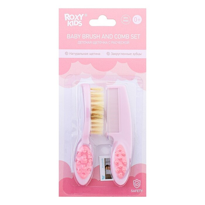 Детская щеточка с расческой от ROXY-KIDS . Полипропилен, ворс из натуральной щетины