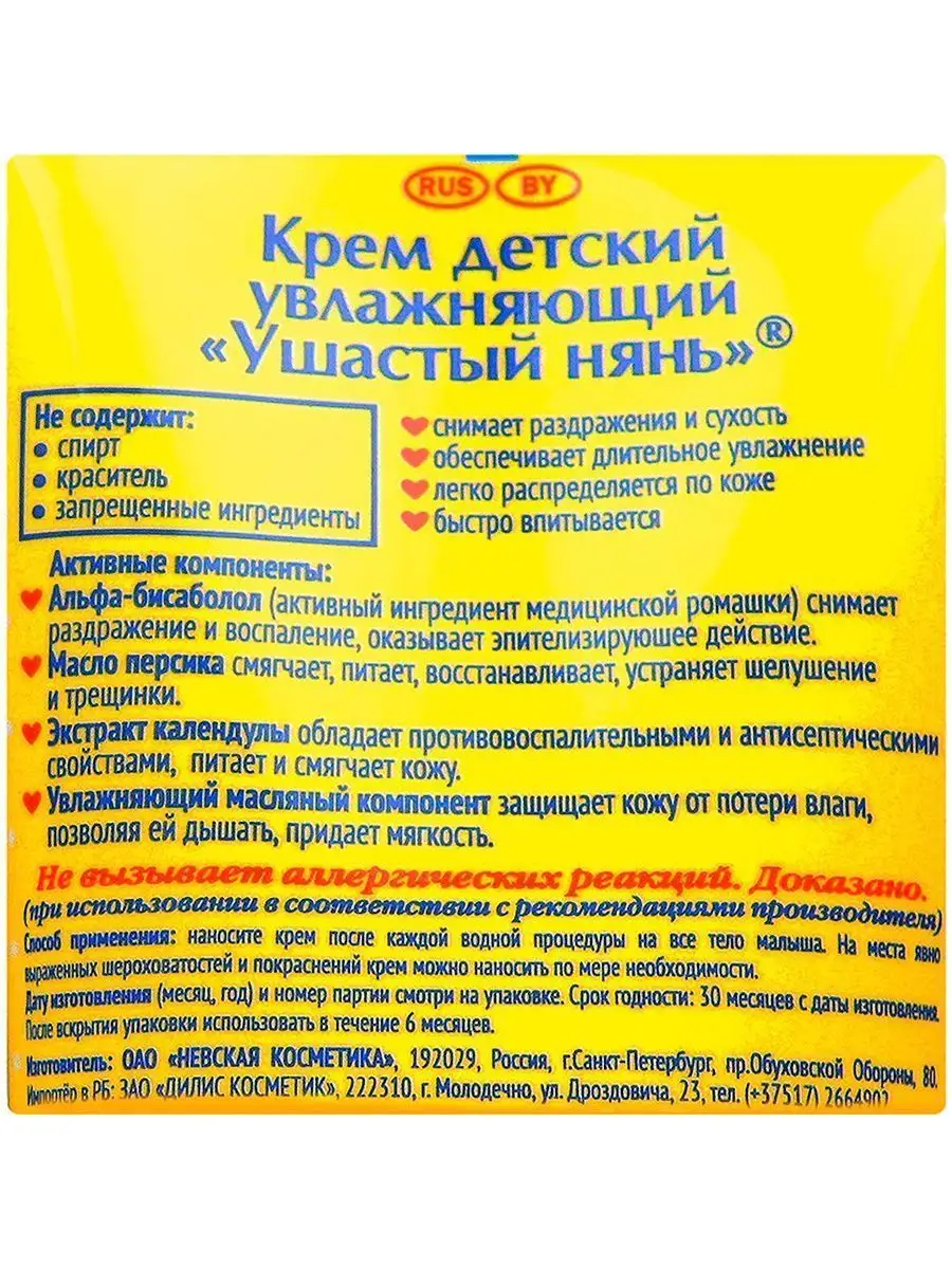Крем детский ушастый нянь увлажняющий 100 мл.