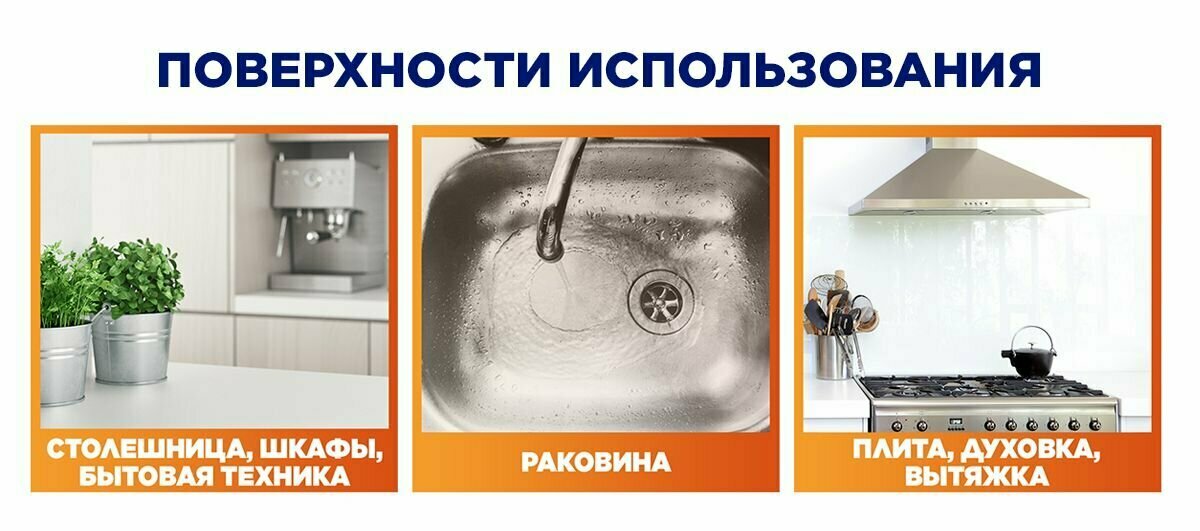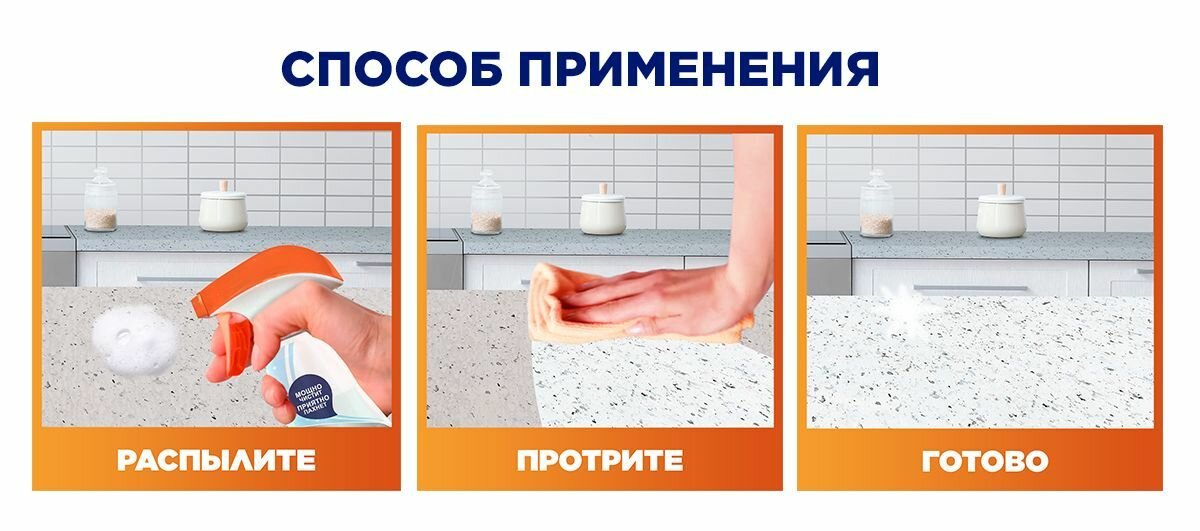 Вполне экономичный Удаляет жир и налёт с кухонных поверхностей |