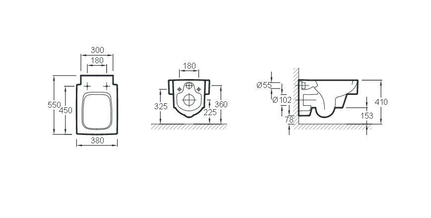 TERRACE EDA102-00 Подвесной унитаз, 55 х 38 см