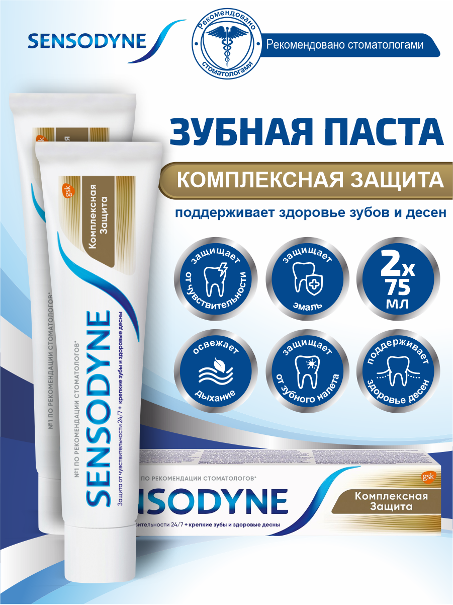 Спайка*2 штуки Зубная паста Sensodyne Комплексная защита, для чувствительных зубов, 75 мл, 2 шт.