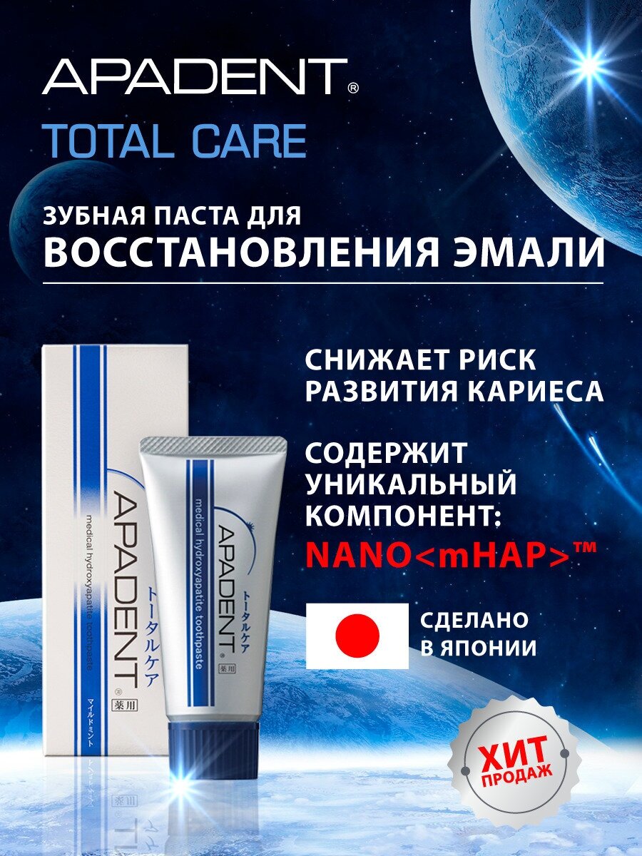 Apadent total care зубная паста, реминерализирующая, медицинская гидроксиапатитовая, лечебно-профилактическая, 120гр
